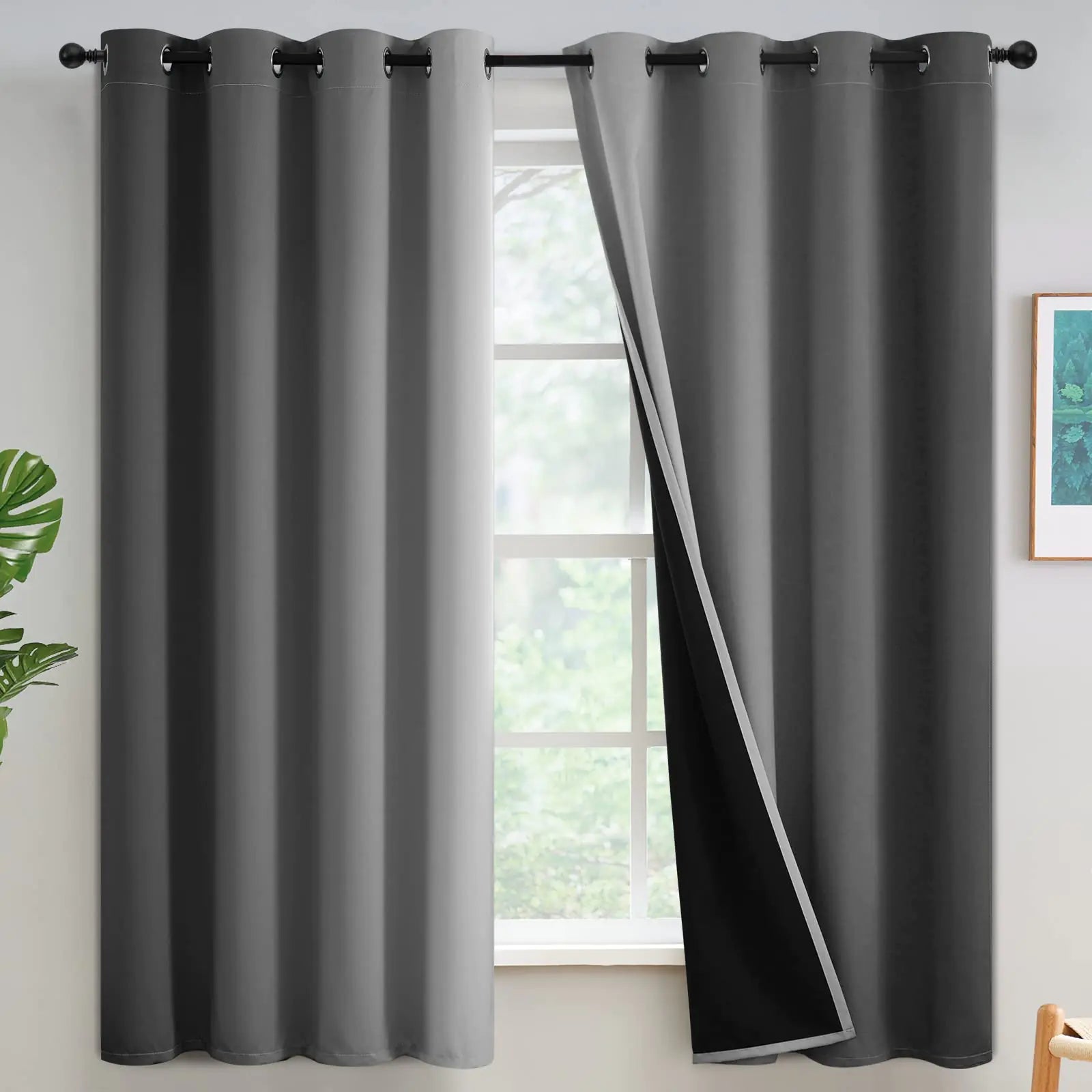Yakamok Grey 100% Blackout Curtains for Bedroom,Ombre Room Darkening Curtains for Living Room Grommet Window Curtains 63 inches LongThermal Insulated Gradient Curtains & Drapes2 Panels52x63 inch